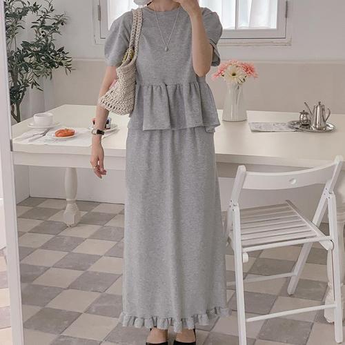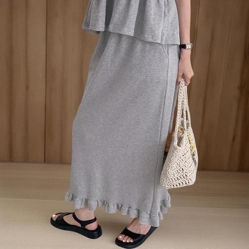 [신상오픈런]여성 프릴 H라인 롱스커트 뒷트임 코튼 여름 밴딩 (39079172)