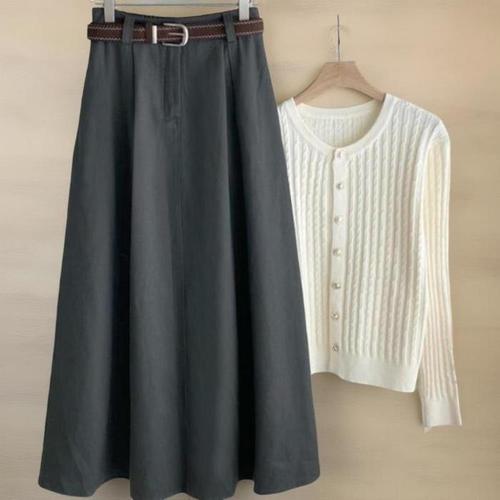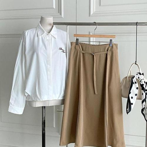 [신상오픈런]여자 심플 면혼방 라이오셀 벨티드 a라인 롱 스커트 (41368842)