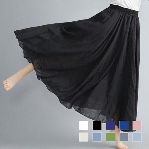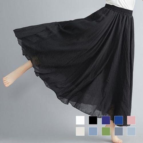 [에이치플러스몰]여성 아사면 롱치마 1P A라인 여름 밴딩 얇은 치마