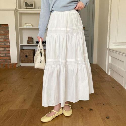[신상오픈런]봄트렌치 여자 밴딩 미색 플리츠 면치마 롱스커트 (29790160)