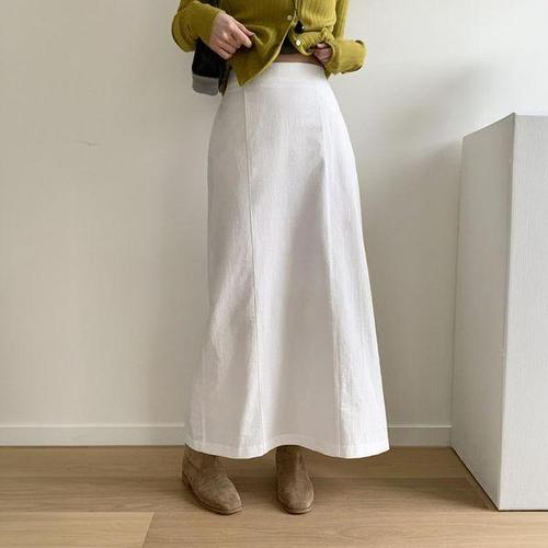 [신상오픈런]여성 뒤트임 스트레이트 바이오 코튼 가을 롱스커트 (41564548)