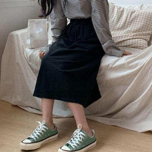 [다잇템][다잇템] 여자 링밴딩 등원룩 휘뚜루 에이라인 슬릿 코튼 롱스커트_23388026_588872
