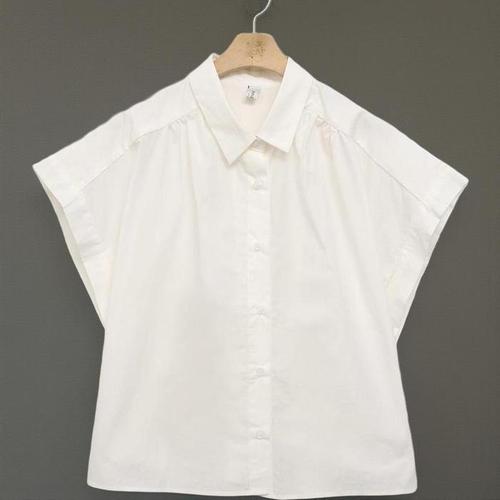 [셀럽하우스]화이트 PQTK3596 프릴 여성 반팔 블라우스 여름 코튼