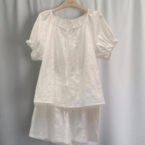 [신상오픈런]여성 프릴 반팔 블라우스와 반바지 세트 면100 러블리 (38169835)