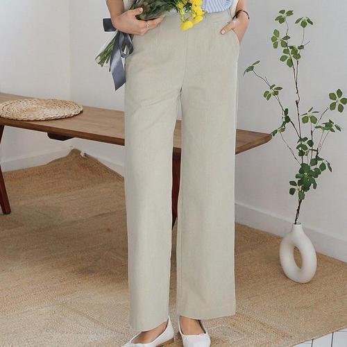 [힙제이]여름팬츠 린넨 9부 슬랙스 일자 9부바지 여성 면혼방 냉장고바지