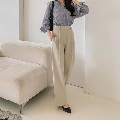 [신상오픈런]하이웨이스트 면바지 여성 봄슬랙스 스판 싱글핀턱 (30667693)