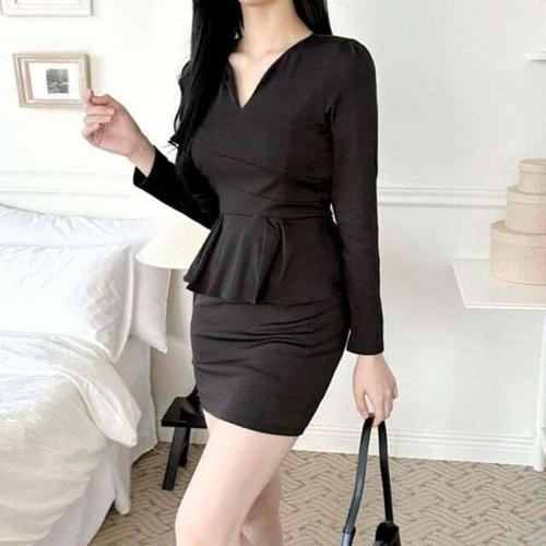 [셀럽하우스]여성 GMAA8136 정장 원피스 슬림핏 셔링 봄 가을 하객룩 면접룩