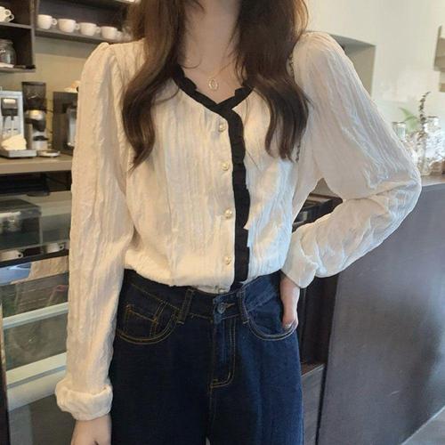 [신상오픈런]핀턱블라우스 연주회 면접 봄출근 흰셔츠 어깨셔링 (30546396)