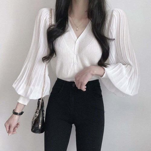 [셀럽하우스]팔뚝살 RTAF3002 커버 면접블라우스 퍼프 하객블라우스 브이넥