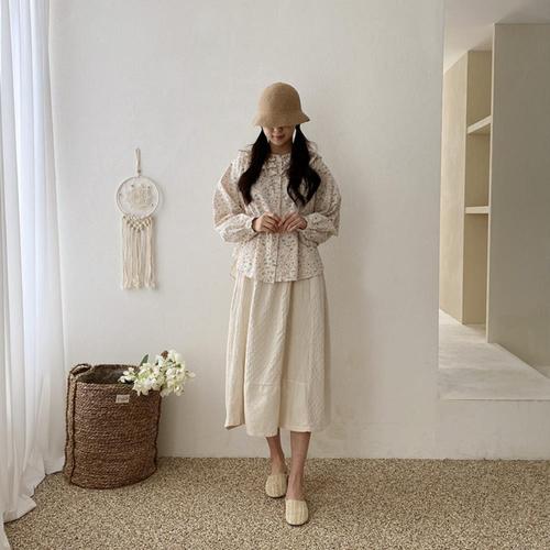 [옷자락]여자 3단 프릴 카라넥 꽃무늬 플라워 면남방 블라우스_4