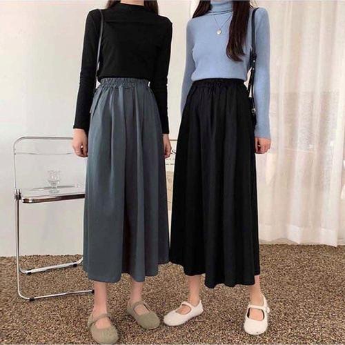 [다잇템][다잇템] 여자 면원단 일자 FW 골지 슬릿 고무줄 편한 롱치마_15693021_588872