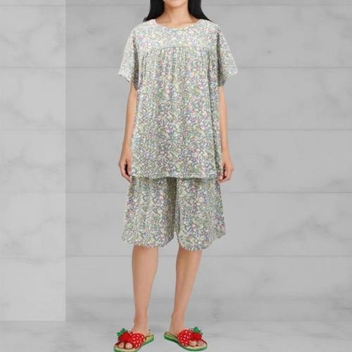 [신상오픈런]여성 플라워 프린트 면100 반팔 반바지 잠옷 세트 (41316107)