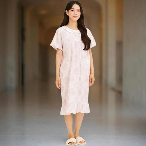 [신상오픈런]여성 나염 아사면 코튼 루즈핏 반소매 잠옷 원피스 (41315936)