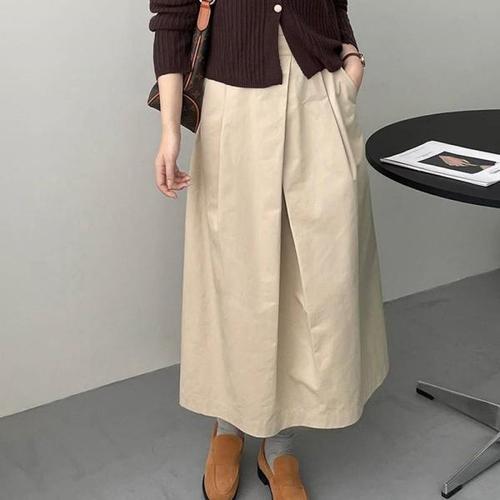 [오너클랜]인기상품 슬림핏 스커트 언밸런스 주름 A라인 면100 롱스커트 [WDF8AFA_250918]