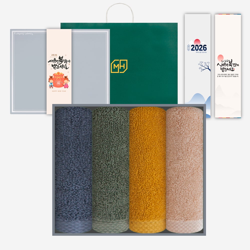 명절 설 수건 선물세트 쇼핑백+띠지 30수 150g (4매)