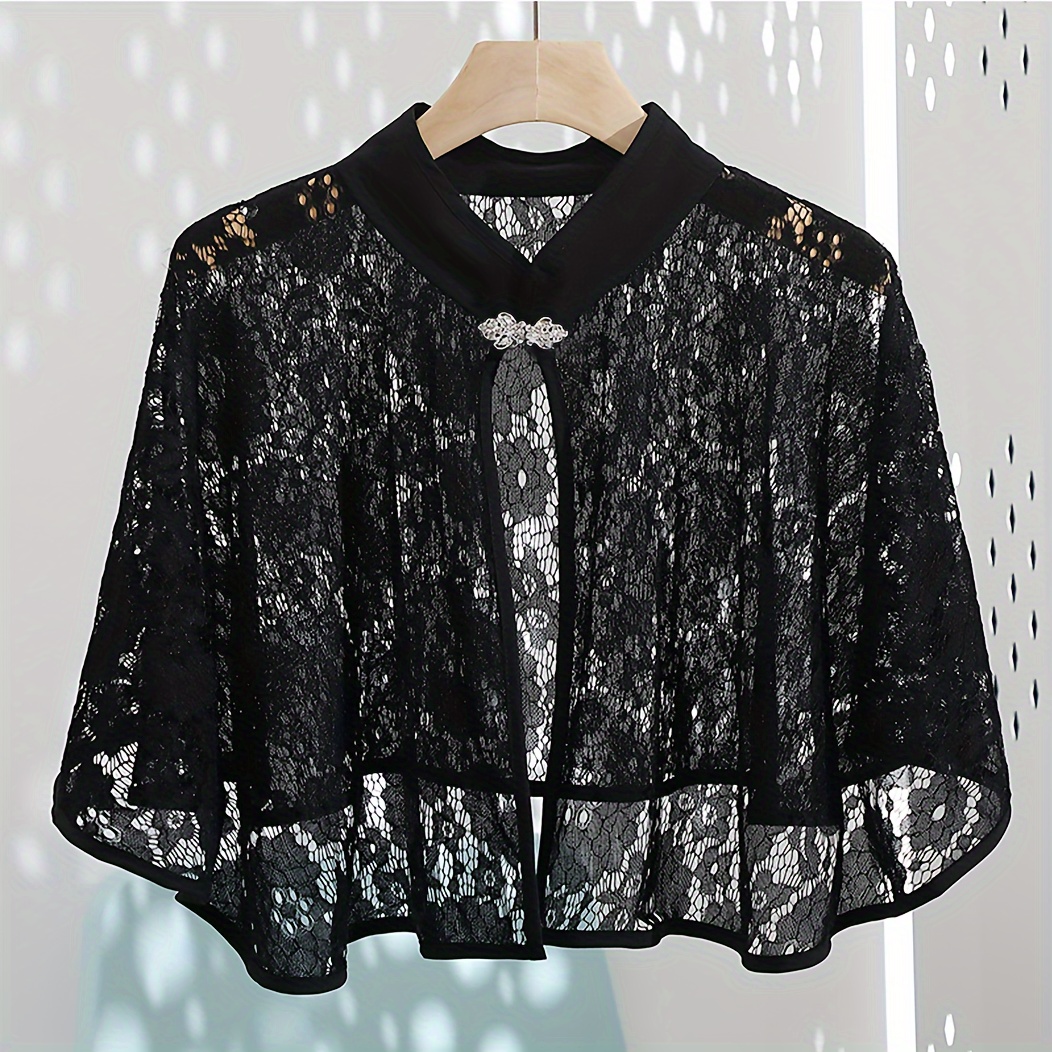 TEMU 빈티지 케이프 여름 드레스 스트랩 - 섬세한 모노크롬 레이스 숄 - 가벼운 오픈프론트 가디건 - 완벽한 웨딩 액세서리와 중국식 우아함