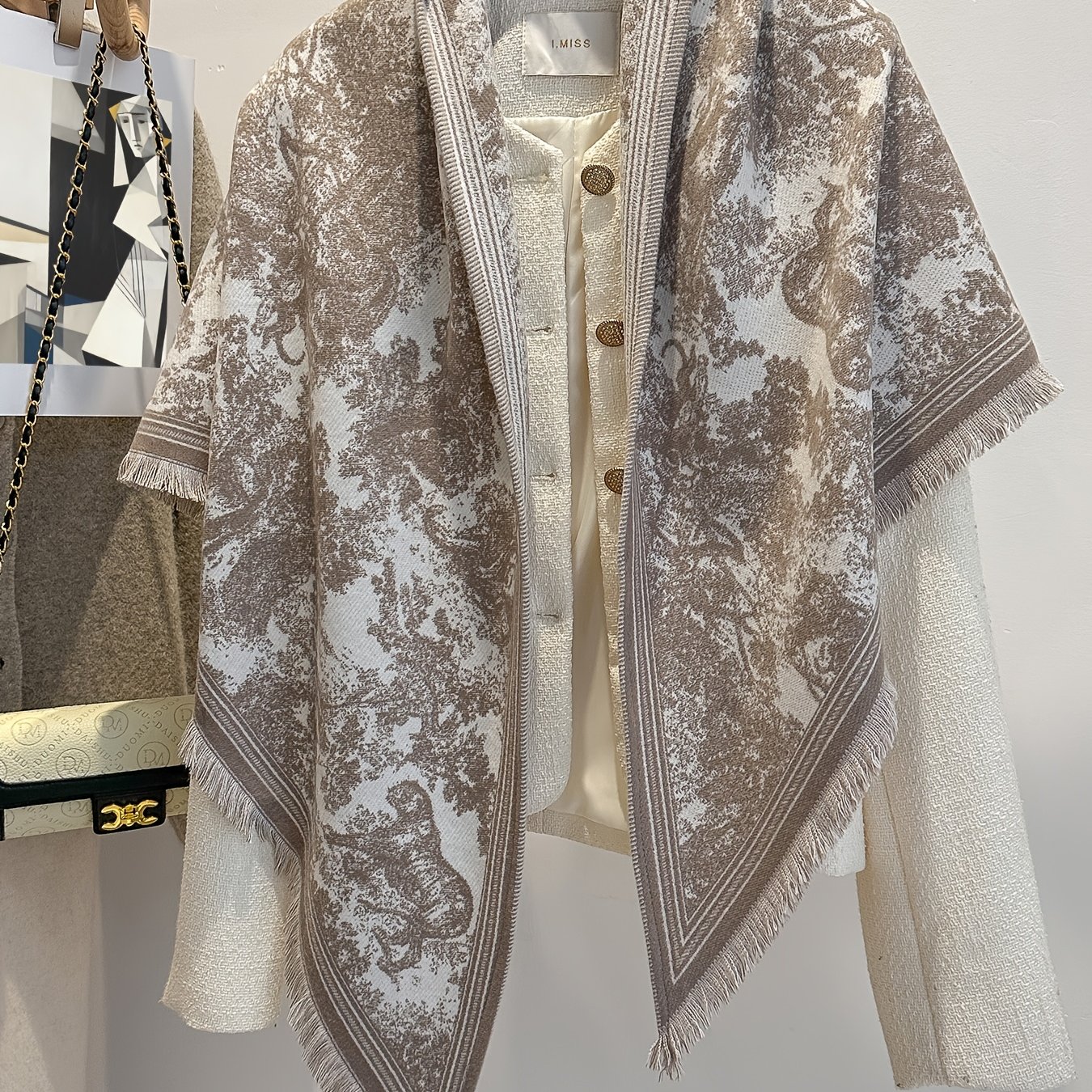 TEMU 플러스 사이즈 - 레트로 자카드 패턴 숄 | 데일리룩을 위한 태슬 디테일이 있는 우아하고 따뜻한 고급 액세서리, IROJEFF의 중간 신축성 원단