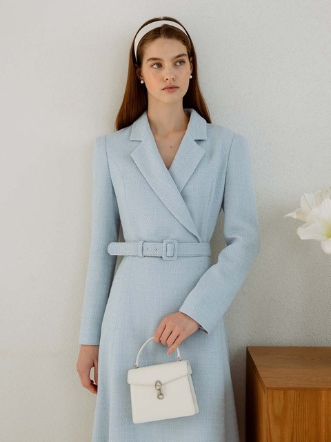 [비에이유 바이 브라이드앤유] 모니카 클래식 노치드 카라 턱시도 트위드 드레스