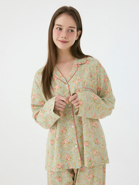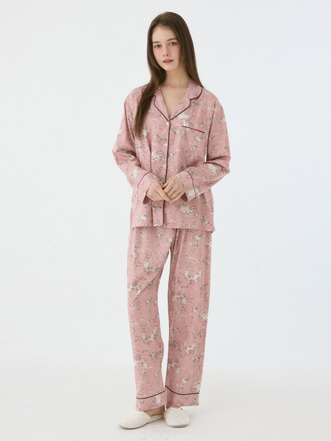 [루나루즈 스튜디오] 여성 로즈듀오 모달코튼 긴소매 카라넥 투피스 잠옷