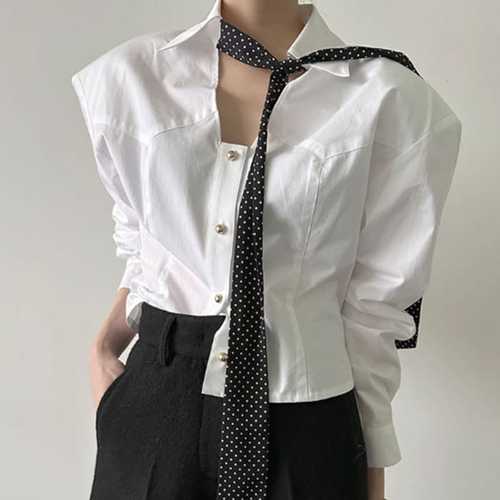 슈팅스타 / 타이 포인트 브이넥 카라넥 크롭 모던 트랜디 셔츠