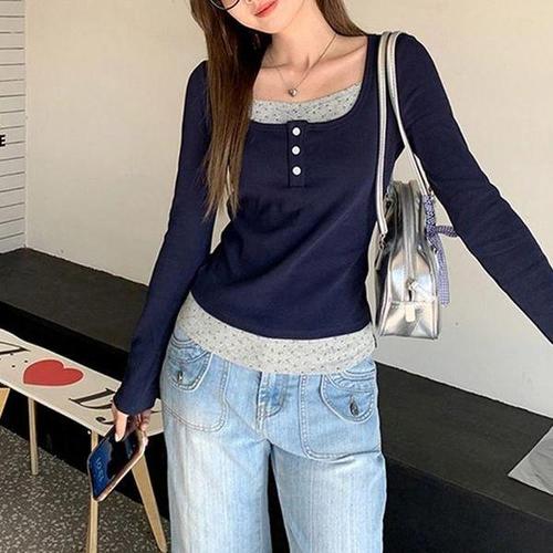 [셀러허브_여성트랜드패션]Rly 여성 모던 레이어드 포인트 단추 티셔츠 TDN-0132