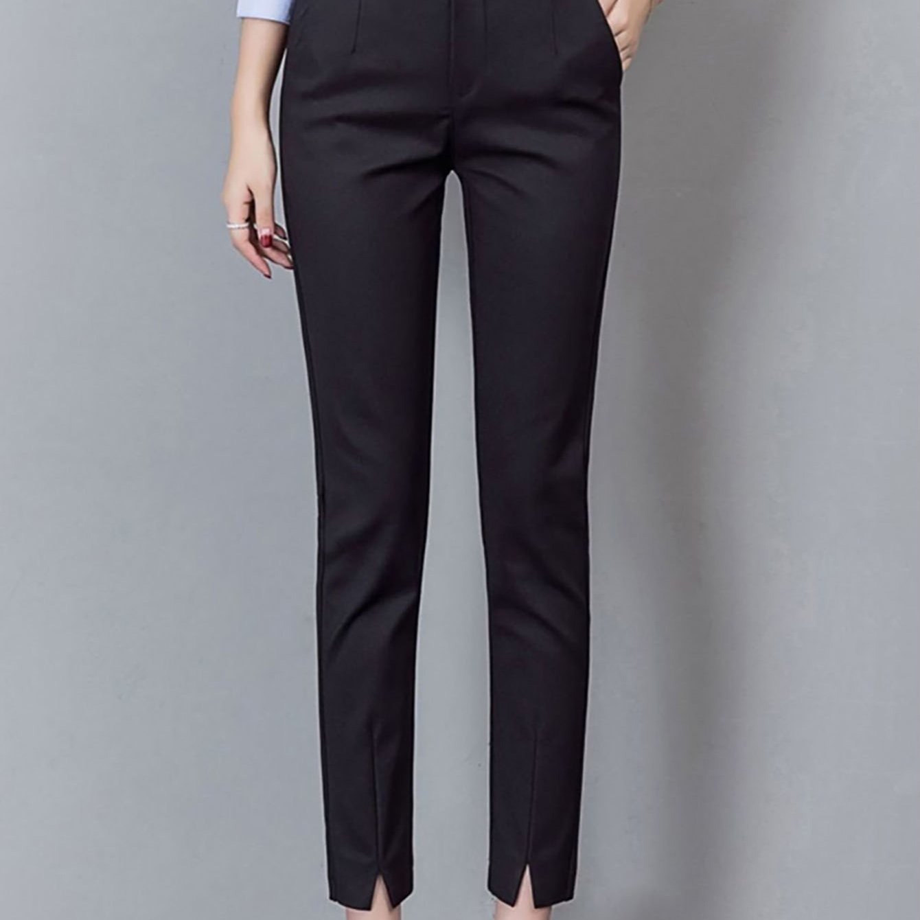 TEMU 여성용 슬림 트임 정장 바지 봄 여름 가을 데일리 스판 일자 9부 캐주얼 바지 면접 오피스룩 슬림소녀 SLIM GIRL