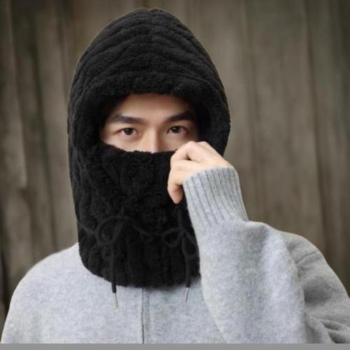 니트 모자 겨울 면화 두꺼운 콜드 모자 야외 사이클링 따뜻한 모자 모자 마스크 2 in 1 풀 페이스 보호 모자 귀마개 모자