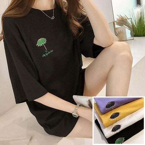 [셀럽하우스]우산 OQHH9083 자수 데일리 롱티셔츠 반팔