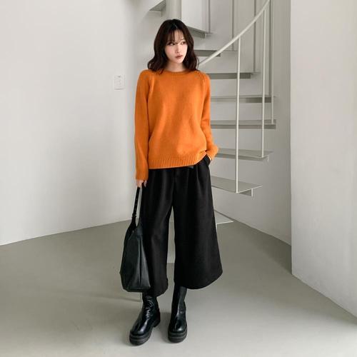 아브릴 여성치마바지 모직 와이드 치마바지 가을 겨울 통바지 빅사이즈 도톰한 7부 바지 UNO4