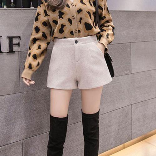 [에이치플러스몰]겨울 모직 정장 반바지 하이웨이스트 슬림 여성 숏팬츠