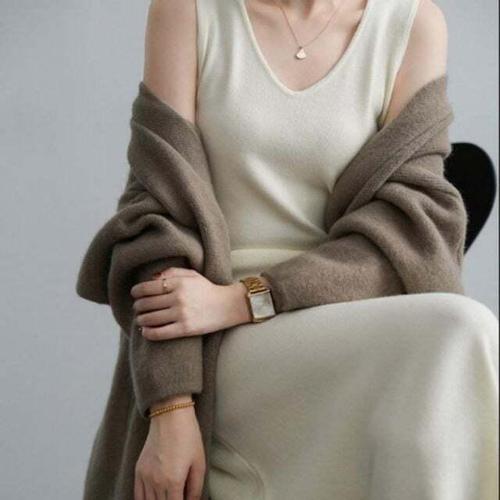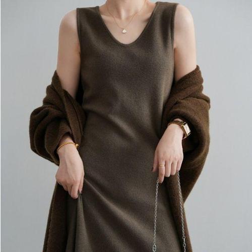 [드리다]드리다 여성 겨울 브이넥 모직 빅사이즈 롱 조끼 나시 원피스 하객 모임 오피스룩 미시 엄마옷