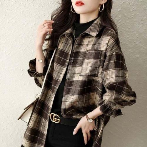[셀럽하우스]루즈핏 QFUN4188 숄더핏 소매 밴딩 캐쥬얼 체크모직 셔츠