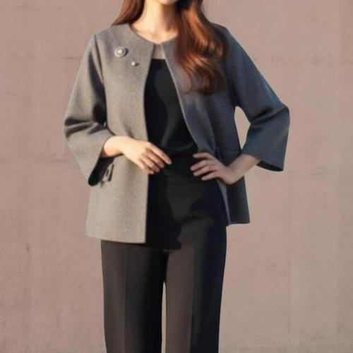 [신상오픈런]여성용 모직 자켓 헤링본 패턴 진주 장식 9부 오피스웨어 (42612869)