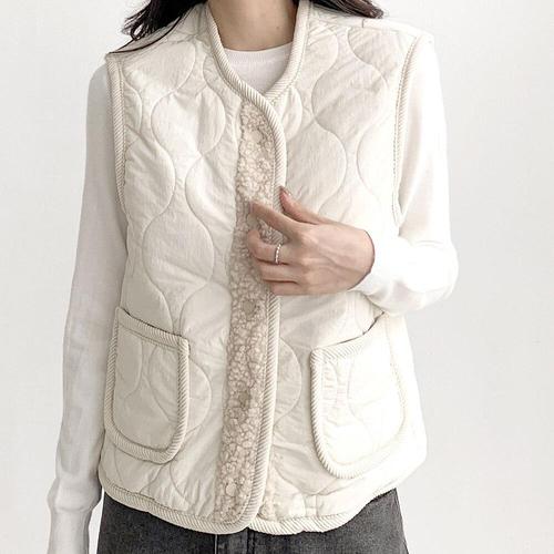 [옷자락]여자 뽀글이 물결 퀼팅 포켓 베이직핏 겨울 양털 조끼