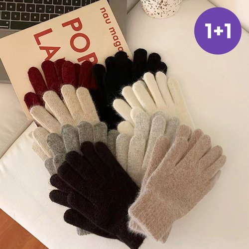 [루즈루나] 1+1 미칼렛 울 장갑 니트 여성 겨울 손가락 기모 니트장갑