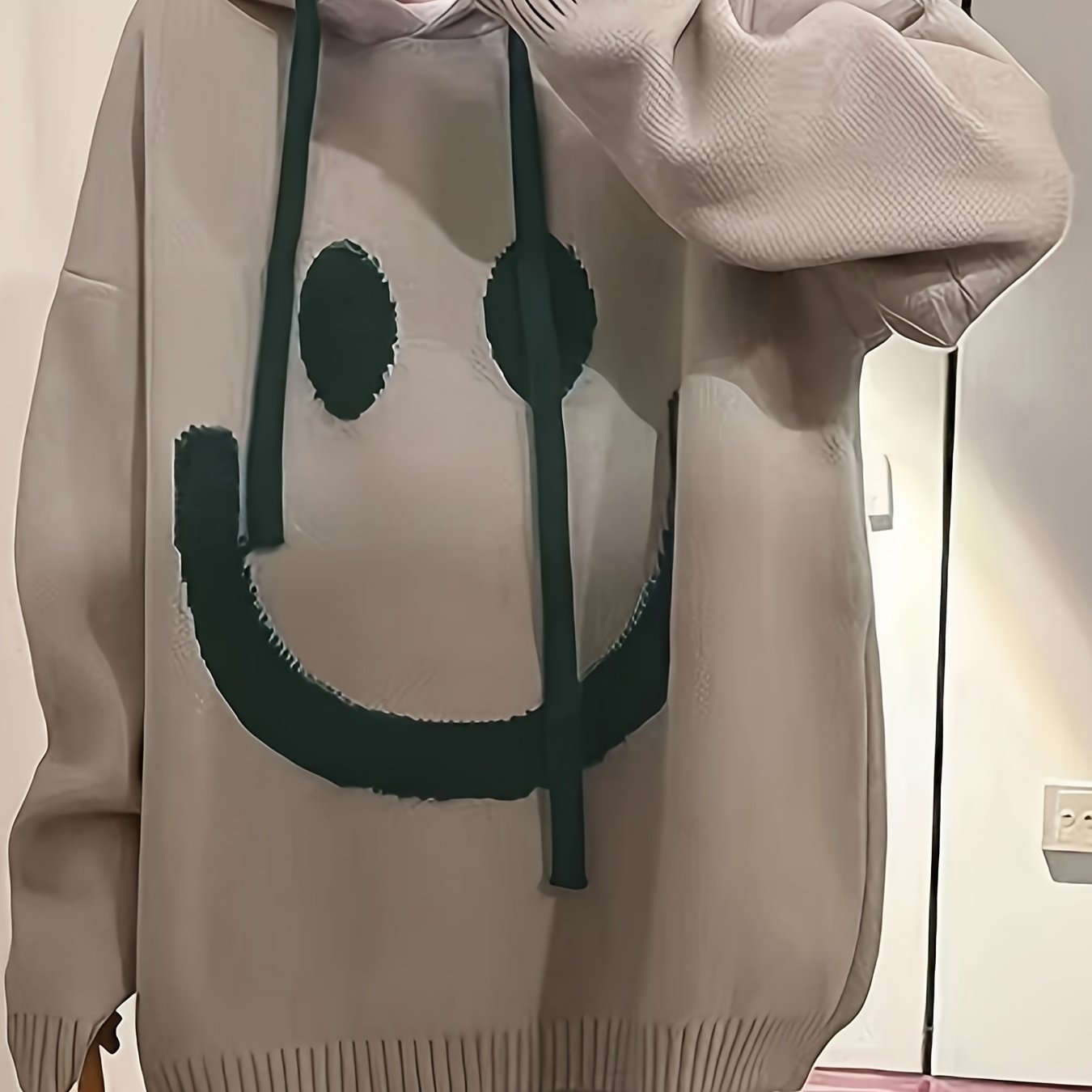 TEMU 플러스 사이즈, 가을/겨울 유럽&미국 스타일 우아한 패션 성숙한 여성용 캐주얼 풀오버 조이풀 페이스 패턴 긴팔 드로스트링 후드티|빅사이즈