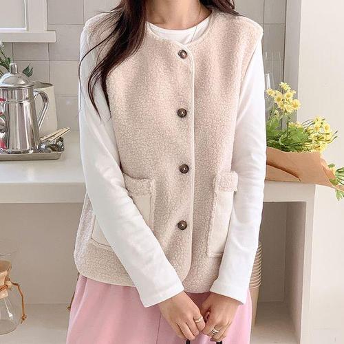[옷자락] 여자 무스탕포켓 뽀글이 겨울 이너 단추 양털 조끼