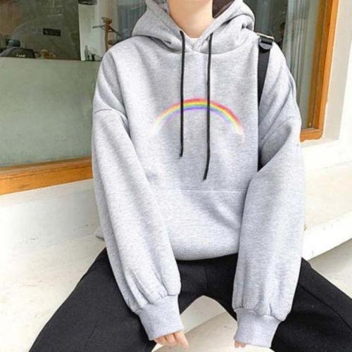 [셀러허브_여성트랜드패션]겨울 후드티 남녀공용 무지개 프린팅 맨투맨 데일리