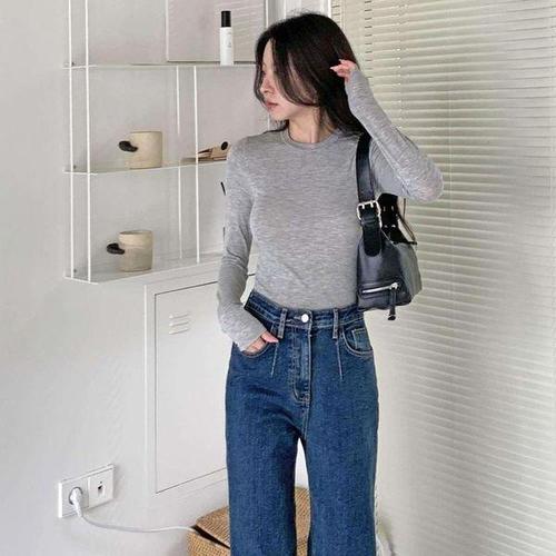 [신상오픈런]여자 데일리 이너 스판 무지컬러 슬림핏 긴팔 티셔츠