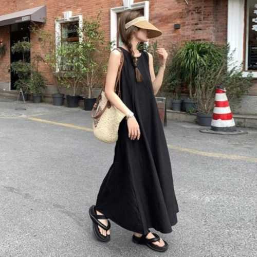 옷자락 / 여자 여름 뒷트임 무지컬러 민소매 a라인 롱 원피스