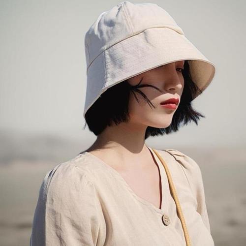 여성 여름 햇빛차단 무지 천 베이직 벙거지 모자 DJ-WH-0954-연베이지