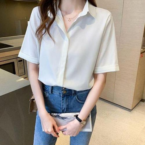여성 5부 소매 무지 쉬폰셔츠 상의 여름셔츠 반팔