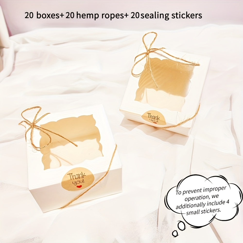 TEMU 60개 우아한 갈색과 흰색 창문 포장 상자 세트, 20개 상자 + 20개 스티커 + 20개 로프 포함, 선물 포장용 플립탑 뚜껑, 결혼식 , 생일, 크리스마스, 추수감사절, 발렌타인데이, 어머니날, 옥토버페스트에 적합