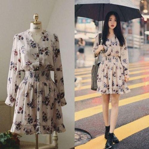 [에이치플러스몰]쉬폰 잔플라워 캐주얼 미니 원피스 필수템 플라워 오