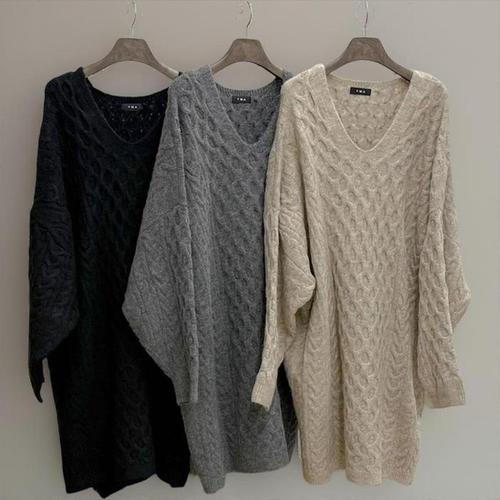 포근 루즈핏 미니 V넥 2색 원피스 니트 두꺼운 여성