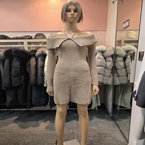 [신상오픈런]오프숄더 골지 벌룬 미니 니트원피스 겨울 (28832669)