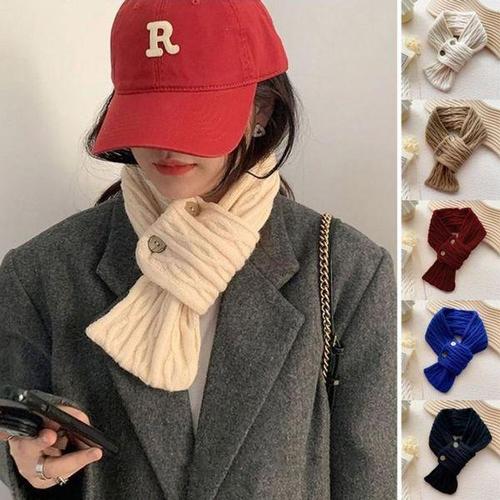 [에이치플러스몰]남성 여성 투 단추 꽈배기 짜임 미니 스카프 목도리 머플러 여성 스카프 털 니트 목도리..