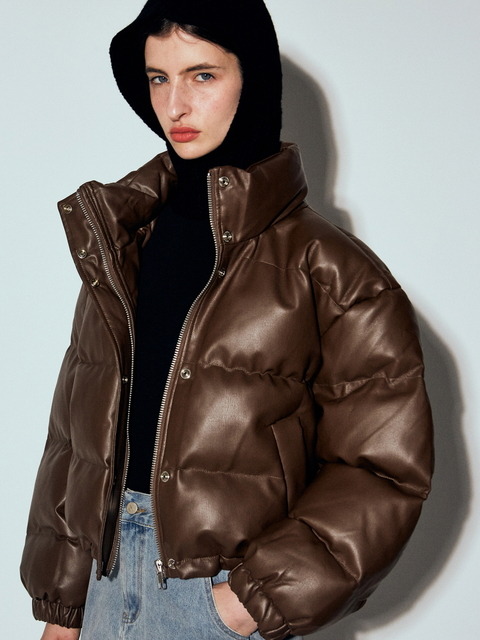[닉앤니콜] 미니멀 비건 레더 크롭 패딩