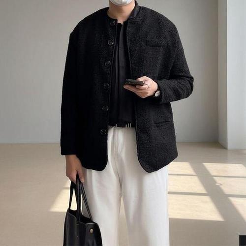 [디바옴므]겨울 카라넥 모직기모 삥줄 크롭 집업 미니멀 오바핏 자켓 점퍼