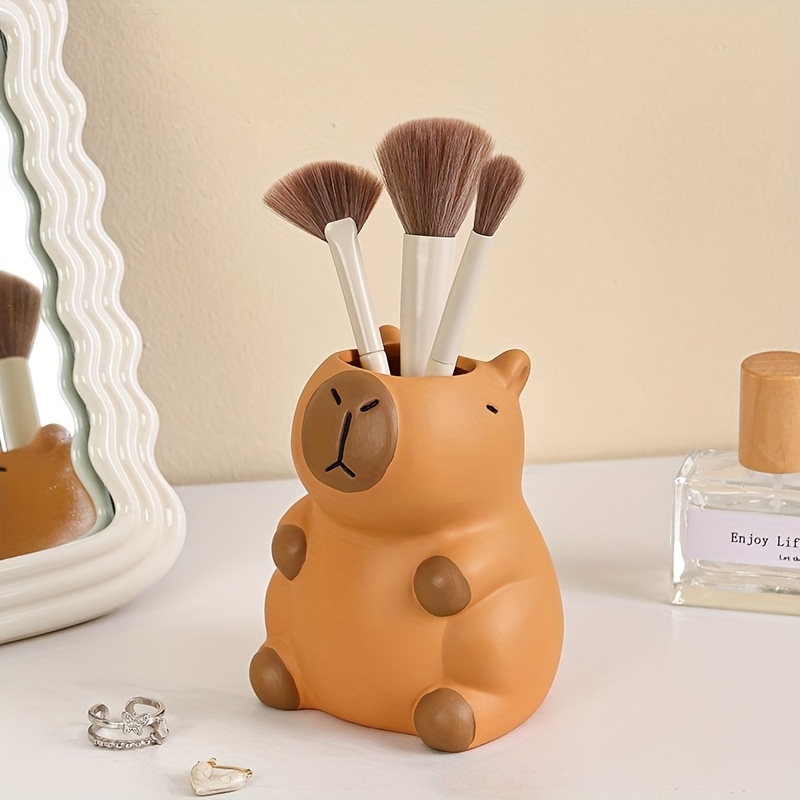 TEMU 1개, 카피바라 펜 홀더, 메이크업 브러쉬 보관 용기, 사무실용 귀여운 만화 데스크탑 장식품, 독특하고 창의적이며 재미있는 메이크업 연필 정리함, 스푼 보관 용기, 홈 데코, 홈 정리 및 다양한 기념일에 적합